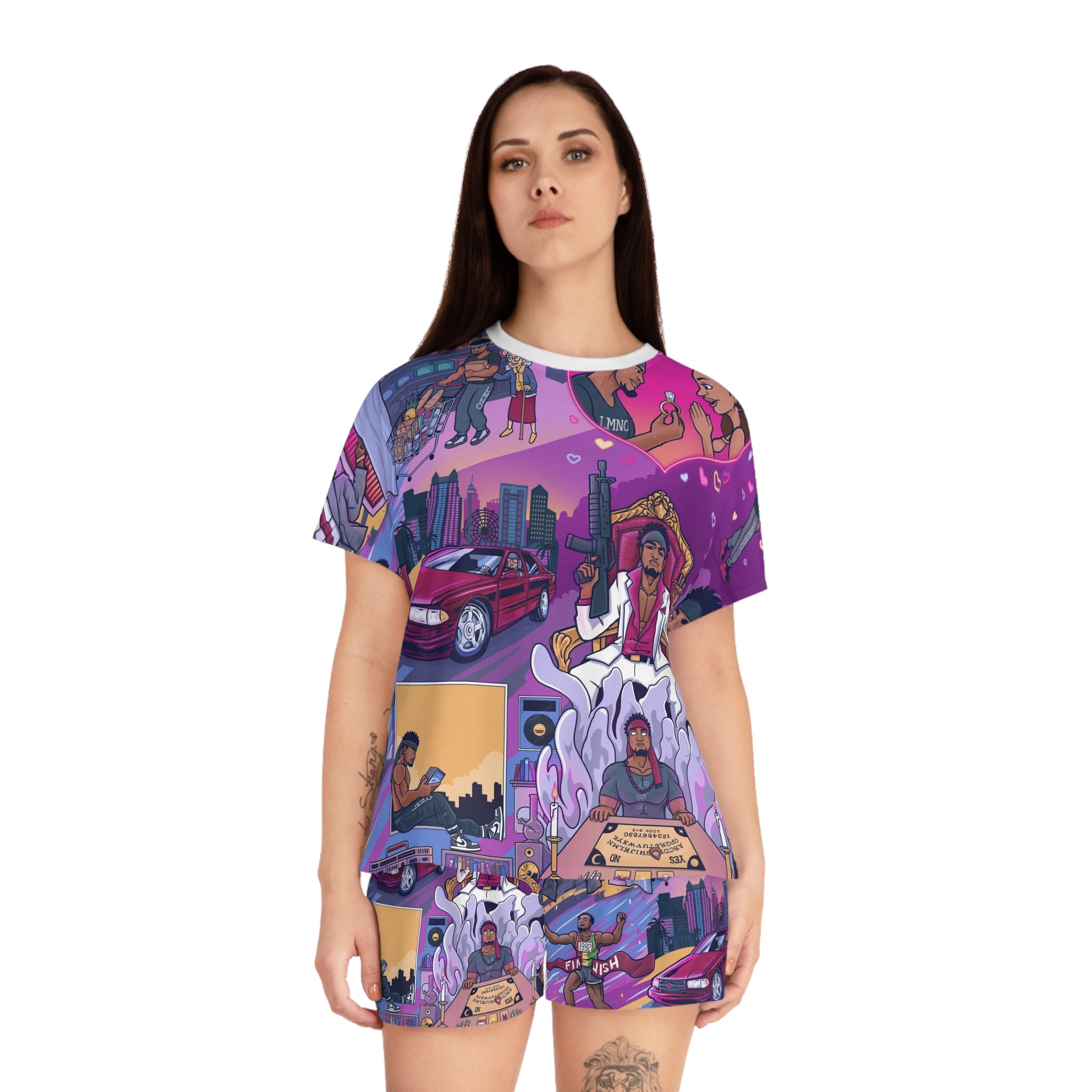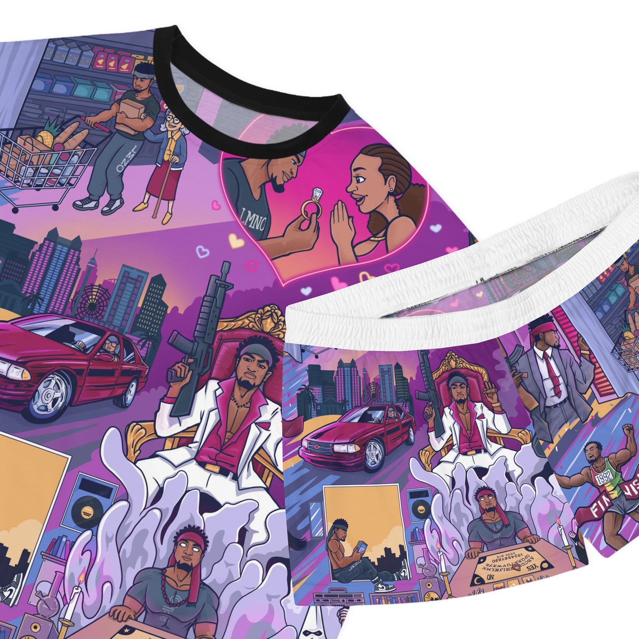 LMNO " Holy Ratchet" Women's Short Pajama Set (AOP)